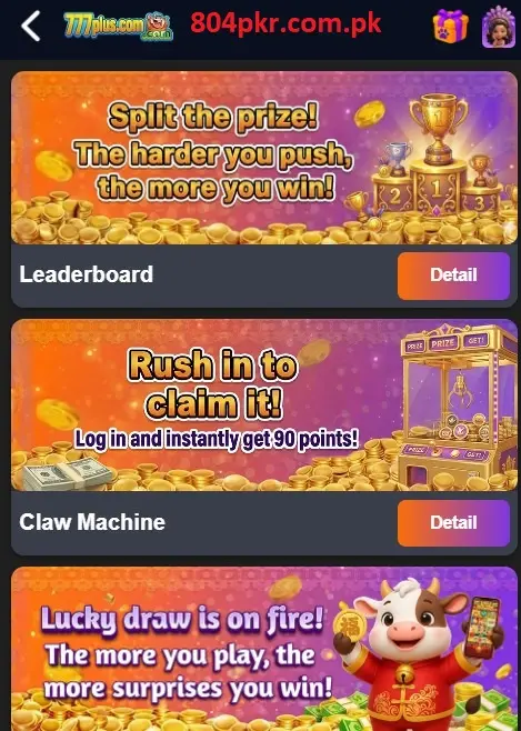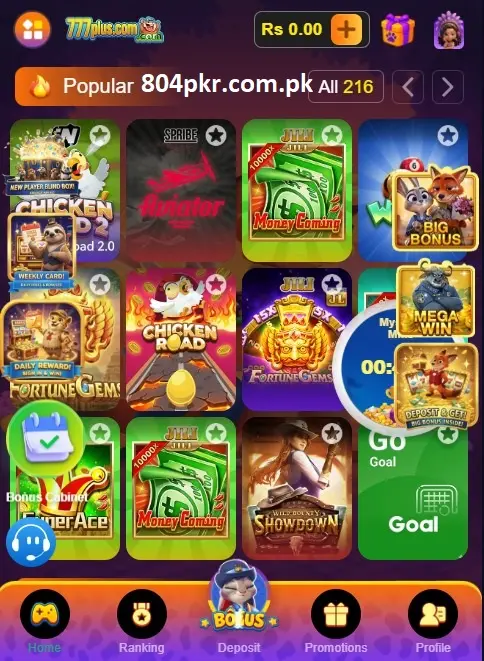 777Plus is a user-friendly mobile app offering a variety of games, daily rewards, and easy local payment options like JazzCash and Easypaisa.
