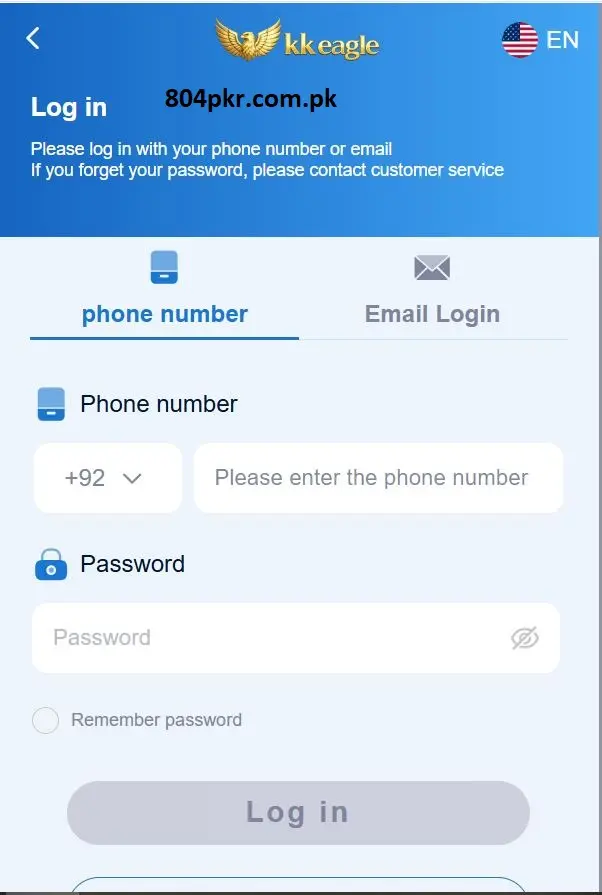 The KK Eagle app has a simple login and registration process. Users can create an account by entering their mobile number or email, setting a password, and verifying with an OTP.